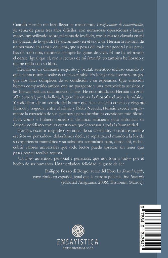 - Remarque al librero/a que, a la hora de buscar el libro, la palabra del título «Cuerpocampo» se escribe junta en una sola palabra, «cuerpo» + «campo»; la tontería puede hacerle desistir y decir que no lo encuentra en el sistema. ↩︎